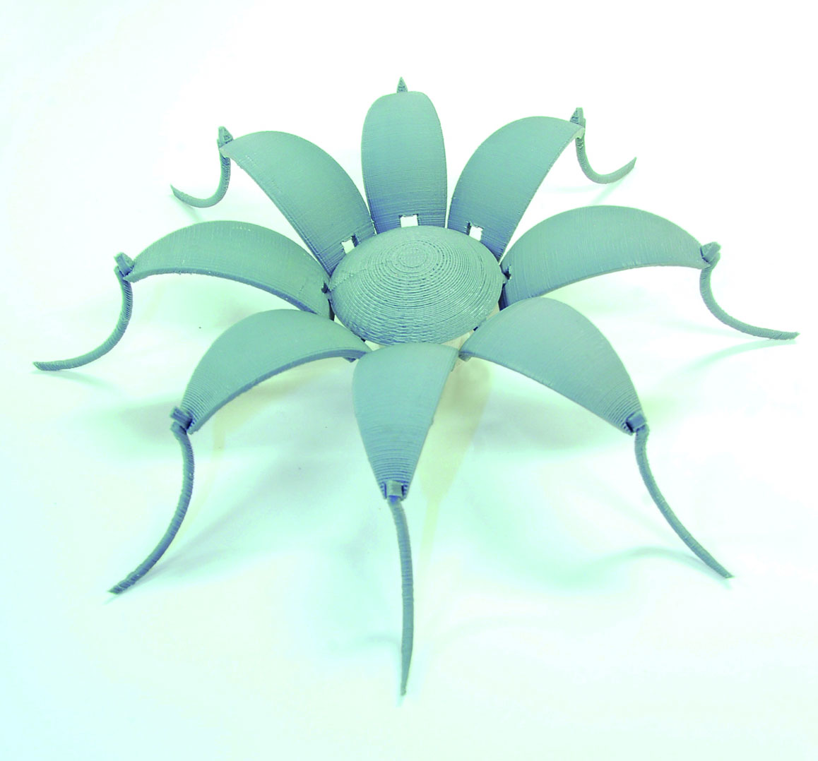 Secrets is a conceptual piece developed to explore rapid prototyping possibilities. It was printed as a single object with eight fully functioning double-jointed legs, which folds into a sphere that fits into the palm of your hand.